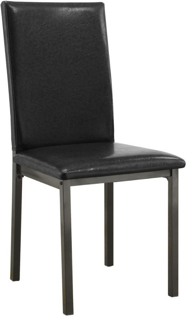 Upholstered in black leatherette, its seat and back cover blend perfectly with a black finish frame. Call attention to a casual dining table with this black dining chair.
