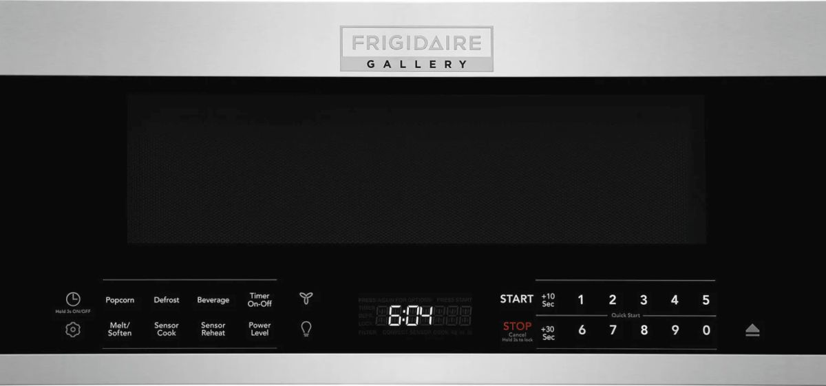 Maximize countertop space with this Frigidaire Gallery 1.2 cu. ft. Low-Profile Over-the-Range Microwave that replaces your undercabinet hood without sacrificing interior capacity. Sensor Cook, preset cooking options, and Sensor Reheat offer time savings so that you can put delicious meals on the table in no time. Dual open door offers two easy ways to open the door, simply touch the icon or pull open the sleek hidden handle.Read More